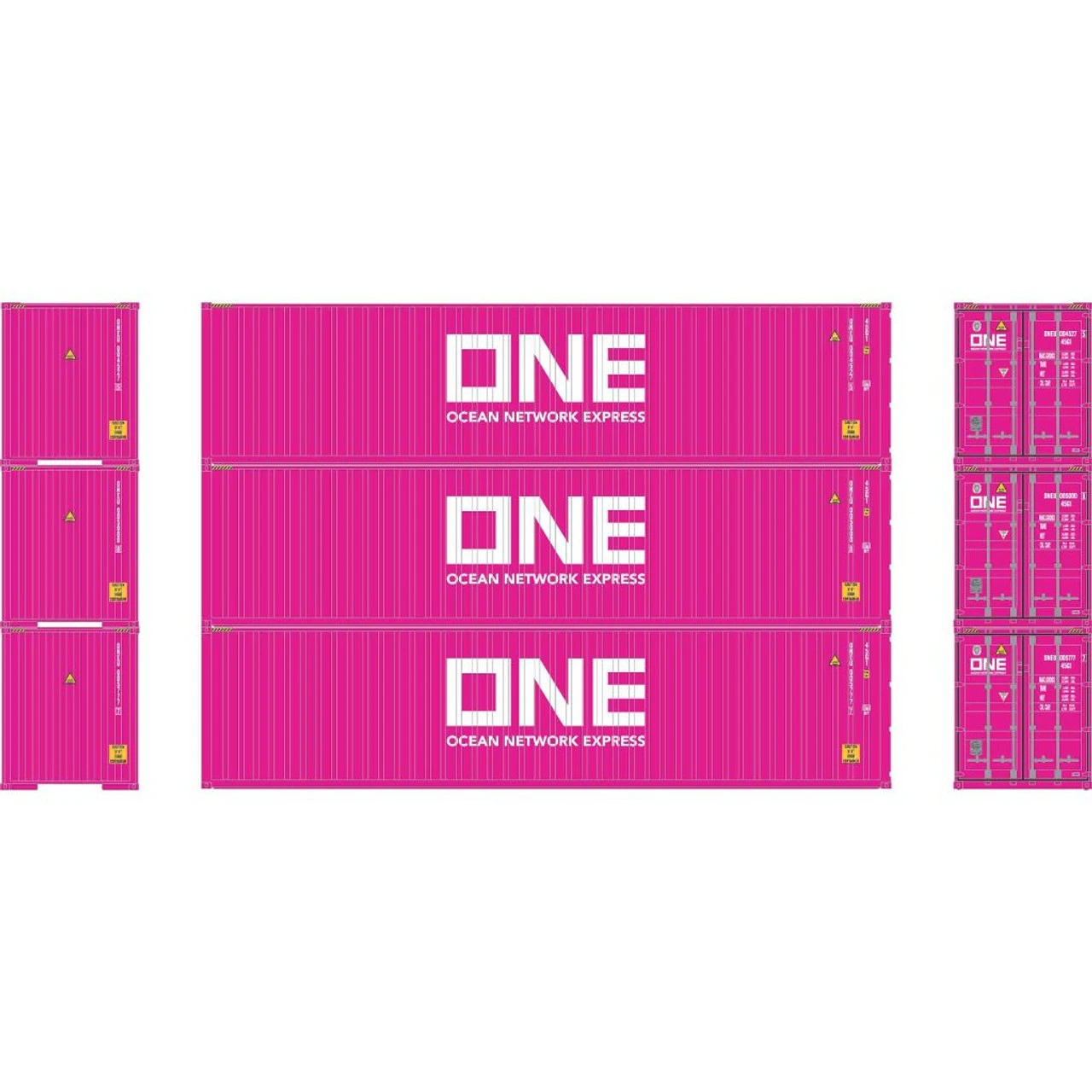 MODEL FEATURES: Fully-assembled Newest horizontal rib front Easily stackable Razor-sharp printing and painting Athearn N Scale 40′ Corrugated Container (3) Road Name: Ocean Network Express (ONE) Road Number: Photo may not show actual road number. Please see description above for the road number.