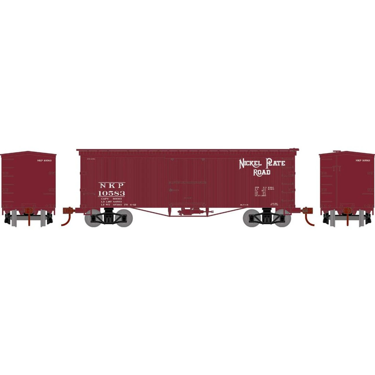 MODEL FEATURES: Fully assembled and ready to operate Separately applied brake wheel and roof walk Molded truss rods with turnbuckles Molded plastic underframe with brake cylinder Screw mounted trucks for accurate tracking Body mounted magnetically operated knuckle couplers Minimum radius: 9¾†PROTOTYPE HISTORY: Railroad boxcars are perhaps not only the best-recognized pieces of equipment ever put into service but also one of the most identifiable symbols of the industry itself. During the early years of the industry freight was hauled on simple flatcars or early gondolas. In Upstate New York was the burgeoning Mohawk & Hudson Railroad, the first chartered system in the United States which later became part of the New York Central, came up with the novel idea of covering its gondolas in 1833 since the railroad dealt with snow throughout much of the winter. The car’s development continued to improve over the years such as switching from basic wood construction with steel outside-bracing, within the same size specifications; 40 feet, a standard size employed by the American Association of Railroads (AAR). What made boxcars great, at least in the eyes of the railroads, was, their ability to haul about anything! Railroads thrive on redundancy to maximize efficiency. Specifications COUPLER STYLE: McHenry Scale Knuckle Minimum Age Recommendation: 14 years Is Assembly Required: No Athearn N Scale 36′ Wooden Boxcar Road Name: Nickel Plate Road (NKP) Road Number: 10724 Photo may not show actual road number. Please see description above for the road number.