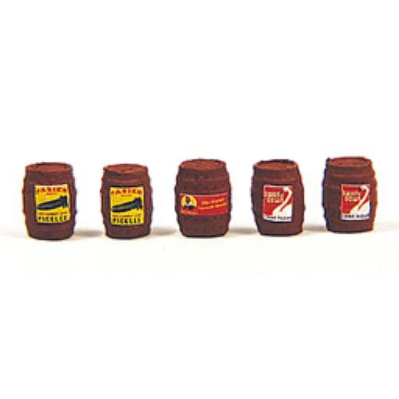 Pre-Painted brown and Labeled. Assorted product labels in each set. (5) JL Innovative HO Scale Custom Barrels – Country Store Road Name: Road Number: Photo may not show actual road number . Please see description for actual road number