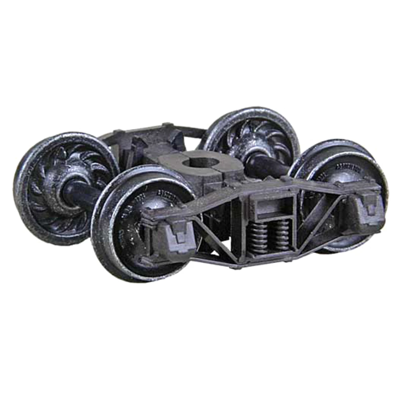 Arch Bar Self Centering Trucks “HGC” Two Piece Fully Equalized Trucks 1pr. The Self-Centering Action trucks self align themselves parallel with the car for easier placement on track. Mounts with a #2 or 2-56 screw. The Arch Bar Truck is typical of these trucks from around the turn of the century. Despite the age of these trucks, they saw more than seventy years of service in some applications. The arch bar was allowed in interchange service until about 1941. On railroads that were not common carriers such as logging or other industrial lines, this restriction of the trucks did not apply since the trucks did not operate on rails other than the owner’s. The Northern Pacific, for example, used truss rod frame maintenance of way cars fitted with arch bar trucks well into the early 1970’s. Many logging railroads also used them at least until then. Truck Features • Self Centering Action – Trucks self align themselves parallel with the car for easier placement on track. • Code 88 (.088) 33″ ribbed back wheels • “HGC” Weighs nearly the same as Metal Trucks • Superior Rolling Ability. • Brake Pads • Accurate markings • Incredible detail True to prototype • Non-magnetic Metal Wheels • Highly Flexible Fully Equalized Trucks • Smooth tracking Free rolling Contoured Insulated Axles • RP-25 Free rolling wheels • Patent number 7,434,518 B2