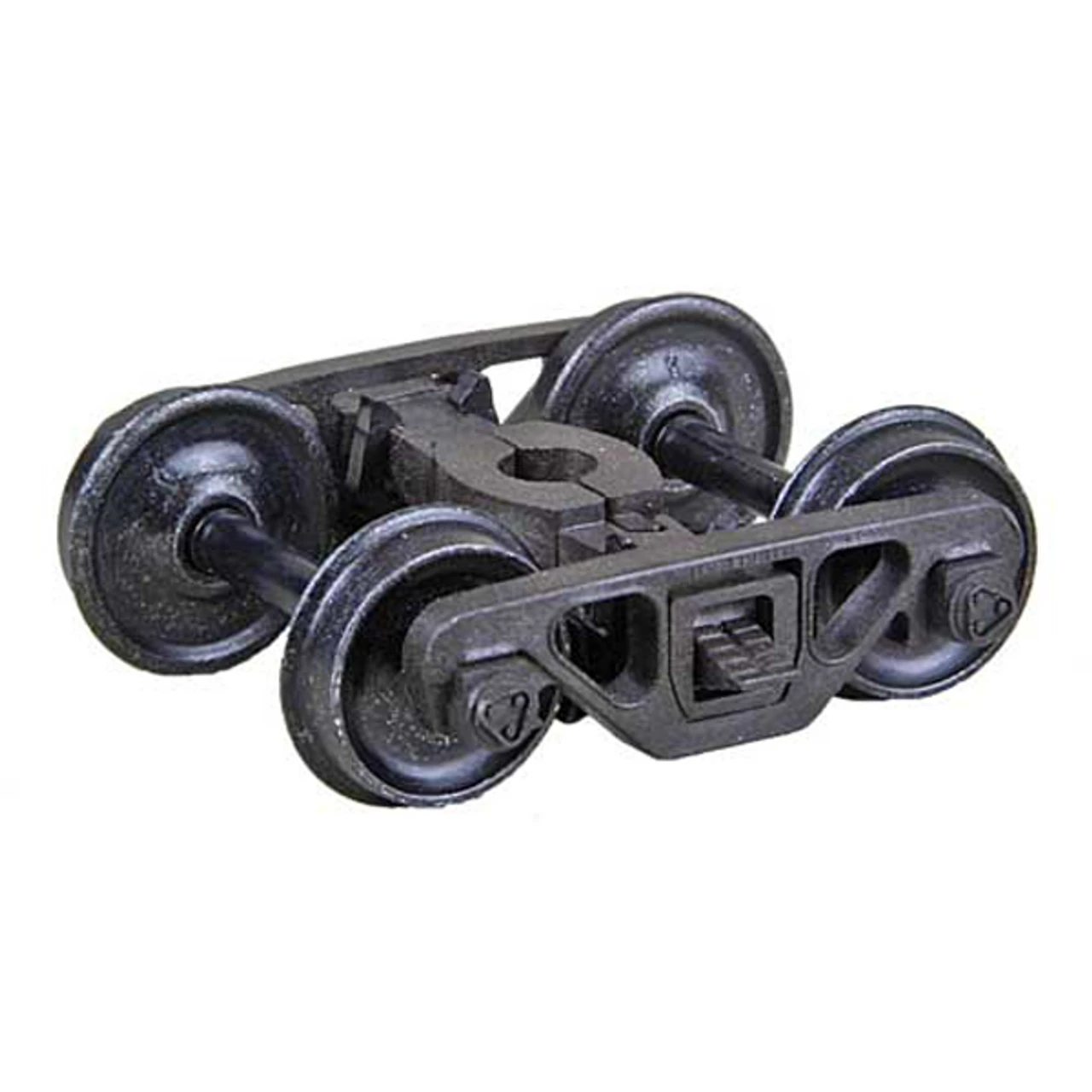 Barber – Bettendorf Self Centering Caboose Trucks (Leaf Spring) “HGC” Two Piece Fully Equalized Trucks 1pr. Mounts with a #2 or 2-56 screw. Mounting Screws not Included. Truck Features • Self Centering Action – Trucks self align themselves parallel with the car for easier placement on track. • Code 110 (.110) 33″ smooth back wheels • “HGC” Weighs nearly the same as Metal Trucks • Superior Rolling Ability. • Brake Pads • Accurate markings • Incredible detail True to prototype • Non-magnetic Metal Wheels • Highly Flexible Fully Equalized Trucks • Smooth tracking Free rolling Contoured Insulated Axles • RP-25 Free rolling wheels • Patent number 7,434,518 B2