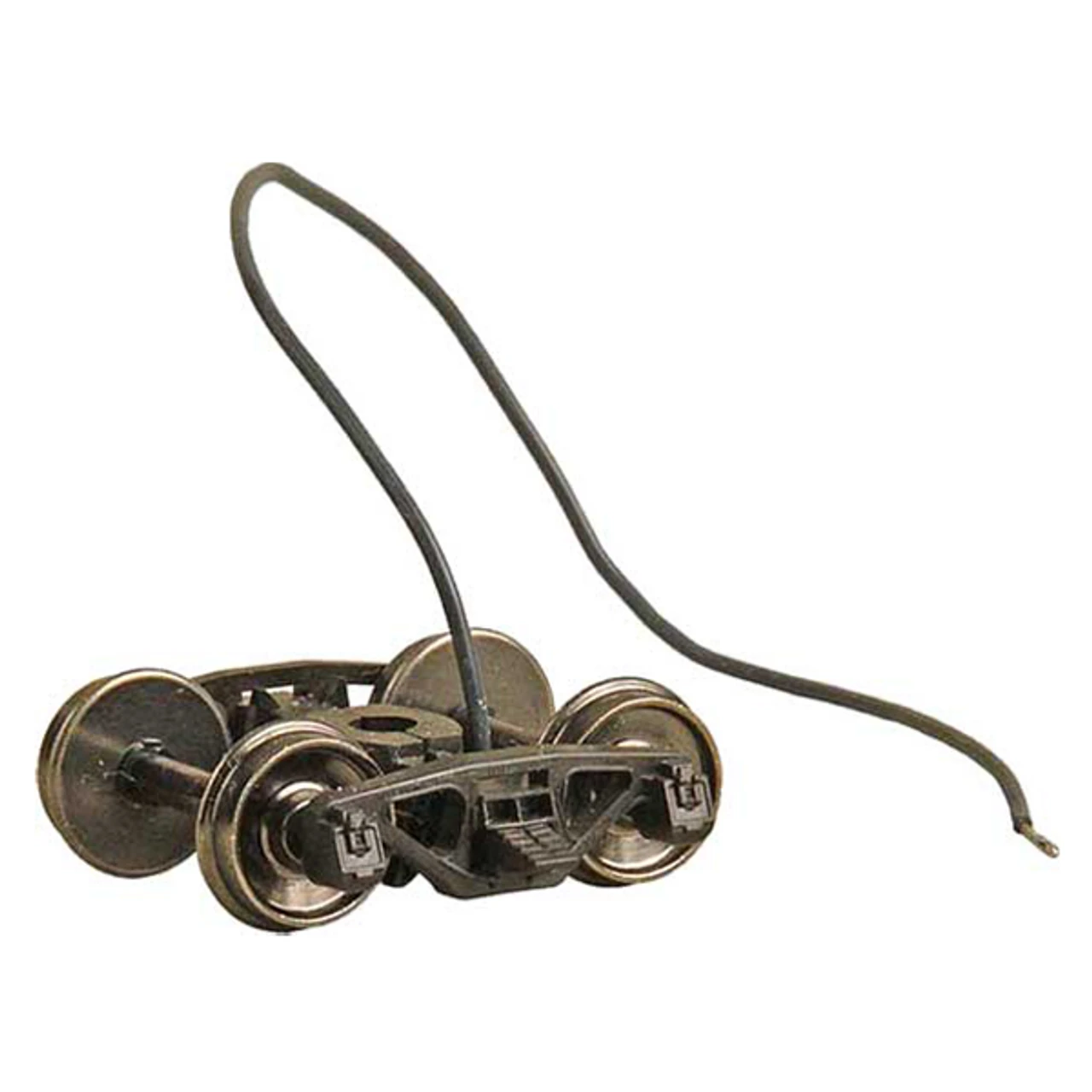 Bettendorf – AAR Electrical Pickup Caboose Trucks (HO) (Leaf Spring) “HGC” Two Piece Fully Equalized Trucks 1pr. Mounts with a #2 or 2-56 screw. Mounting Screws not Included. Truck Features • Self Centering Action – Trucks self align themselves parallel with the car for easier placement on track. • Code 110 (.110) 33″ smooth back wheels • “HGC” Weighs nearly the same as Metal Trucks • Superior Rolling Ability. • Brake Pads • Accurate markings • Incredible detail True to prototype • Non-magnetic Metal Wheels • Highly Flexible Fully Equalized Trucks • Smooth tracking Free rolling Contoured Insulated Axles • RP-25 Free rolling wheels • Patent number 7,434,518 B2