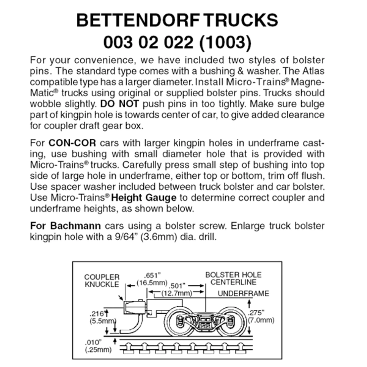 Be the first to review “Micro-Trains 00302022 – Bettendorf Trucks With Medium Extension Couplers (1003) 1 Pair” Cancel reply