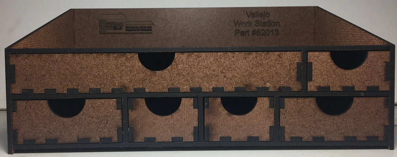 Product Details Brand: Motrak Models UPC: 52013 Manufacturer: Motrak Models Category: Masonite Products This workstation will hold 22 eye dropper paint bottles from Vallejo / AK / MIK.