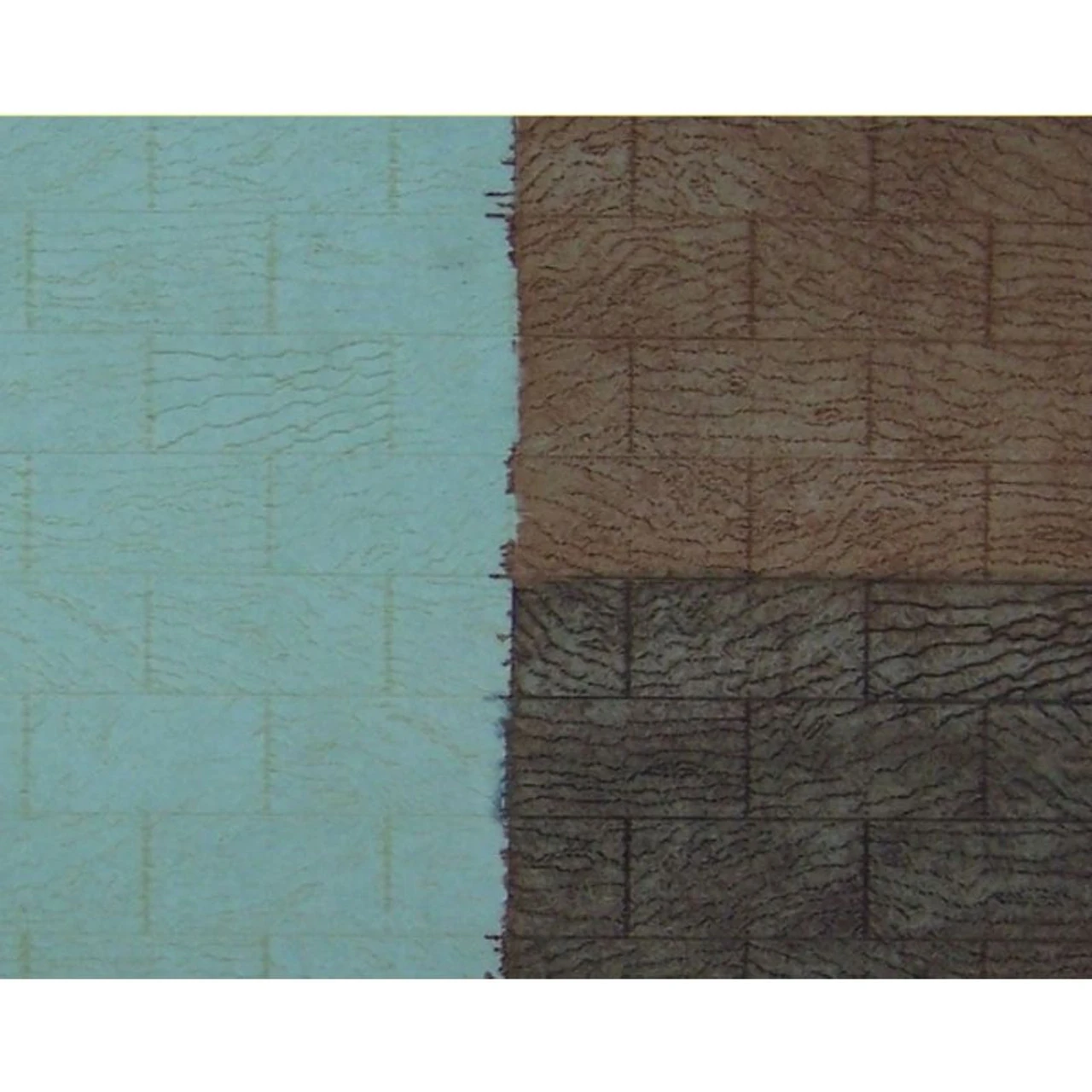 Laser Board sheets that cover a scale area of 48 ft high by 108 feet long. Sheets are 4 x 8 inches with a usefull area of 3.75 x 7.75 inches. Has many uses some of which are siding on mills, exposed floors and roof decking on new construction. Each sheet has engraved 4 x 8 sheets of plywood with engraved graining and a hint of nail holes. One sheet per kit. This material takes paint well and the sample was painted with a spray can.
