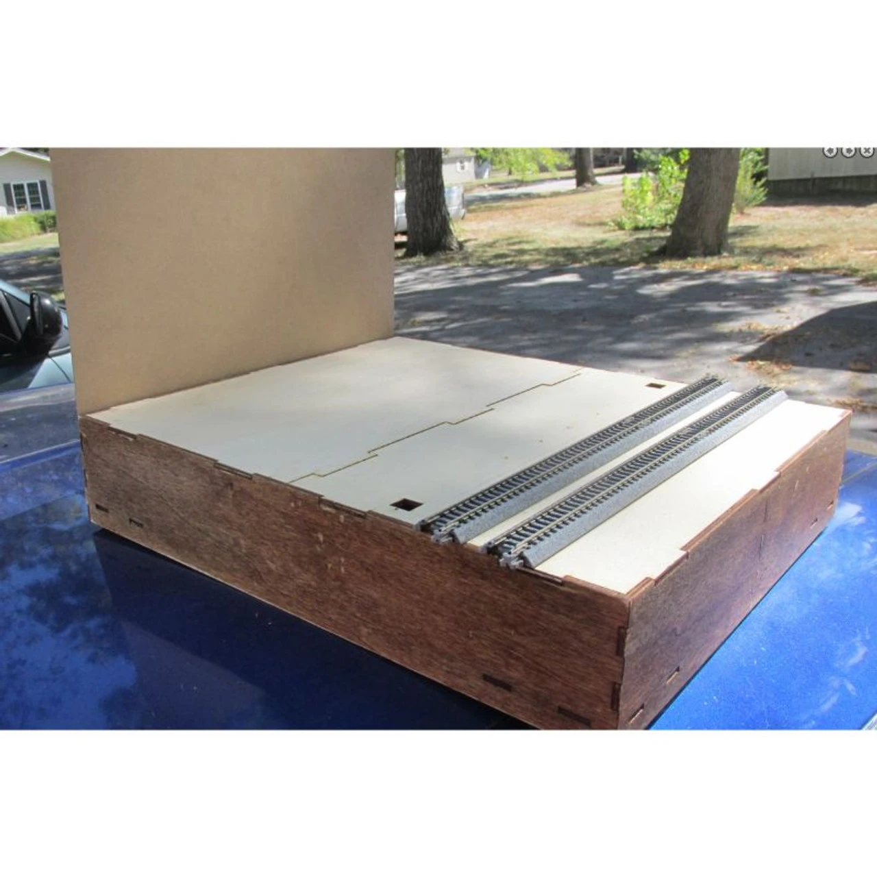 Simple to build and lightwieght, these are the ideal module to get started in T-Track or model railroading in general. Made from 1/8th” plywood with tab and slot construction, the only tool needed to build is a small hammer. These are the 12 1/8″ x 12 1/8″ straight modules. Track not included. Photo shows the complete module with the optional RSL8303 backboard too.