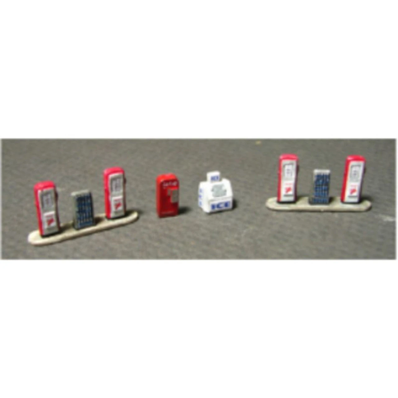 (4 pieces per pack)— (with decals)— Era: 40’s to the early 70’s Showcase Miniatures N Scale Gas Station Group