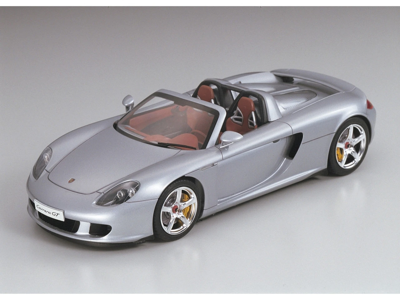 This Tamiya assembly kit recreates the Porsche Carrera GT in 1/24 scale. The Porsche Carrera GT first grabbed grabbed the world’s attention when first unveiled as a concept car at the 2000 Paris Auto Show. Promoted as Porsche’s next generation flagship super sports car, the Carrera GT was officially unleashed onto the international motoring market in 2003. Incorporating the latest and most extreme racing technology, the Carrera GT lines up against the impressive range of super sports cars offered by the worlds top makers, such as the Enzo Ferrari and the Mercedes-Benz SLR McLaren. Featuring a powerful 5.7 liter V10 engine, carbon-fiber monocoque chassis and push-rod suspension all wrapped up in classic Porsche style and elegance, the Carrera GT is the ultimate high-end sports car.
