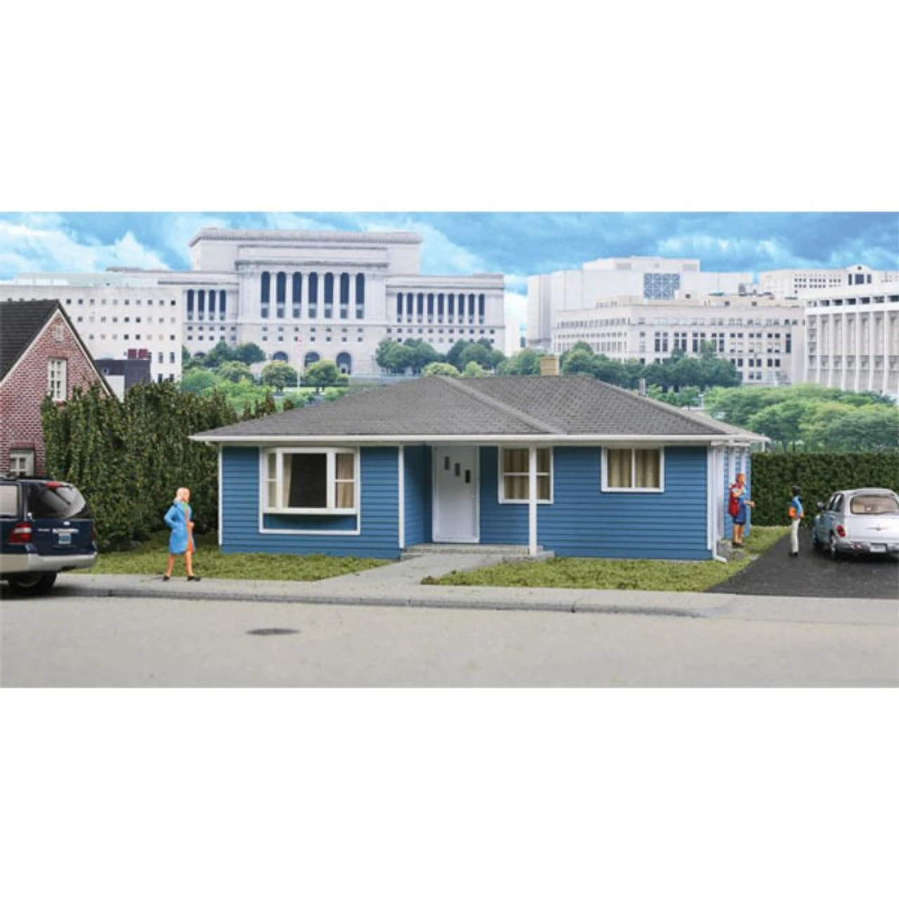 The Walthers Cornerstone HO Scale Framed Ranch Tract House is typical of standardized design homes constructed by the thousands in the postwar era. Designed to make it easy to add several non-identical homes to your neighborhood, this easily customizable tract house kit includes two different styles of front doors and large front windows. The Framed Ranch Tract House will look great in any 1950s and later suburb. Build a neighborhood on your layout with Cornerstone HO Scale housing. Single story wood home with basement and asphalt shingle roof Classic North American house design – perfect home in rural or city scenes Built by the thousands in the diesel era Two alternate front doors for realistic variety Choose large picture or bay living room window Separate gutters and downspouts Add-on roof mounting pad for interior lighting (available separately) Printed window curtains Molded in three colors plus clear window glazing The Framed Ranch Tract House measures 5-1/2 x 4-1/8 x 2-1/4″ 13.9 x 10.4 x 5.7cm