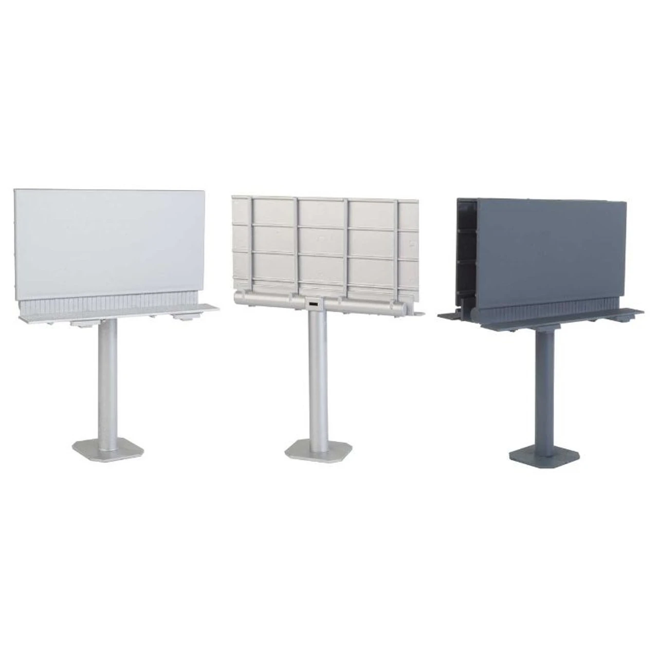 Make your HO highways and byways more realistic with this SceneMaster Modern Single-Post Billboard kit! Designed for easy construction and installation in new or existing scenes, the finished model is perfect for rural or urabn areas and features: Build with single or front and rear billboards Detailed walkways, nonworking lights, and framing Colorful signs included Molded in sturdy gray ABS plastic reinforced with glass fiber to resist bending Walthers HO Scale Modern Single Post Billboard Kit