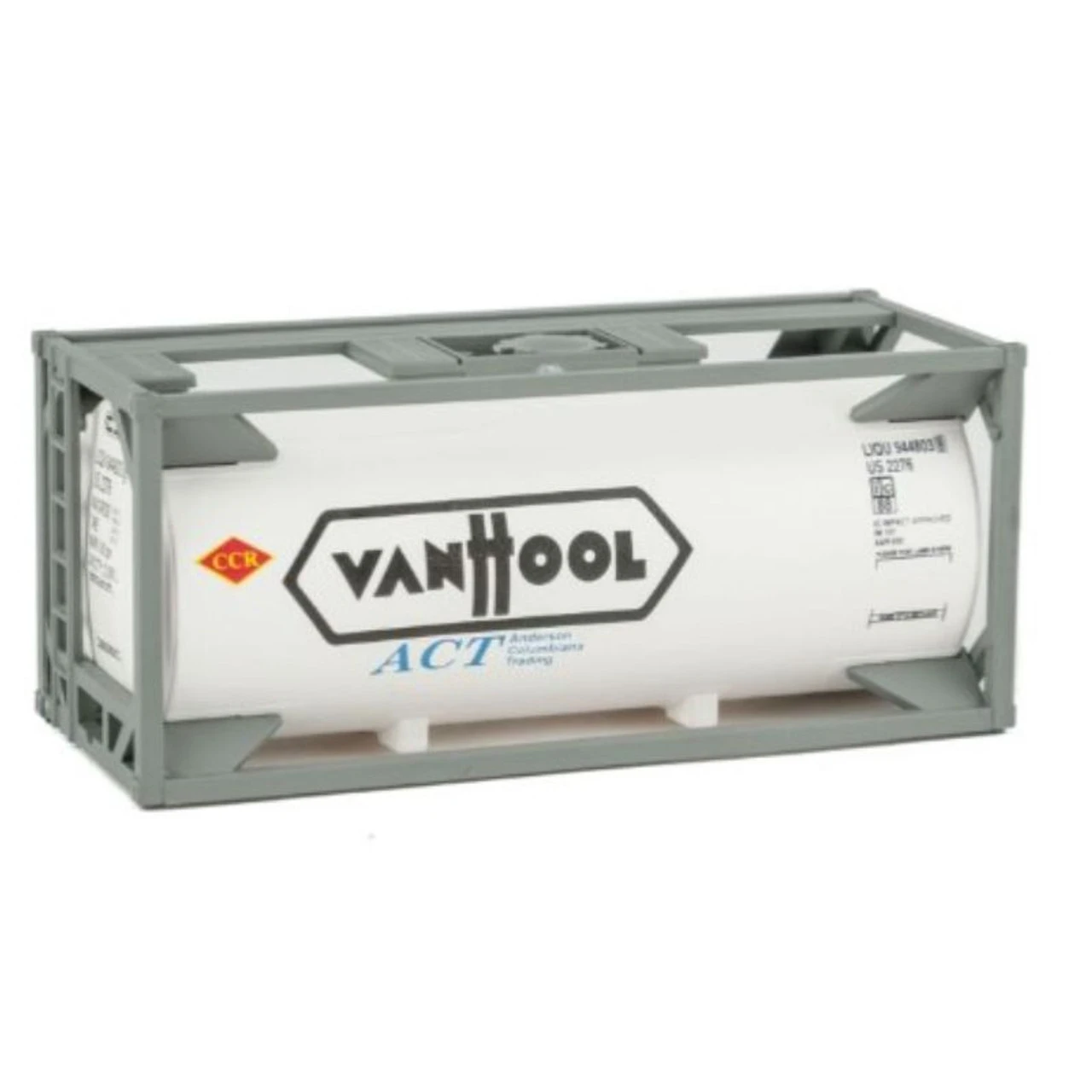 Product Information * Prepainted & lettered * Easy assembly * Realistic loads for WalthersProto(R), WalthersMainline(R) & other well cars * Great detail for terminals, highways and industrial scenes Walthers HO Scale 20′ Tank Container Vanhool